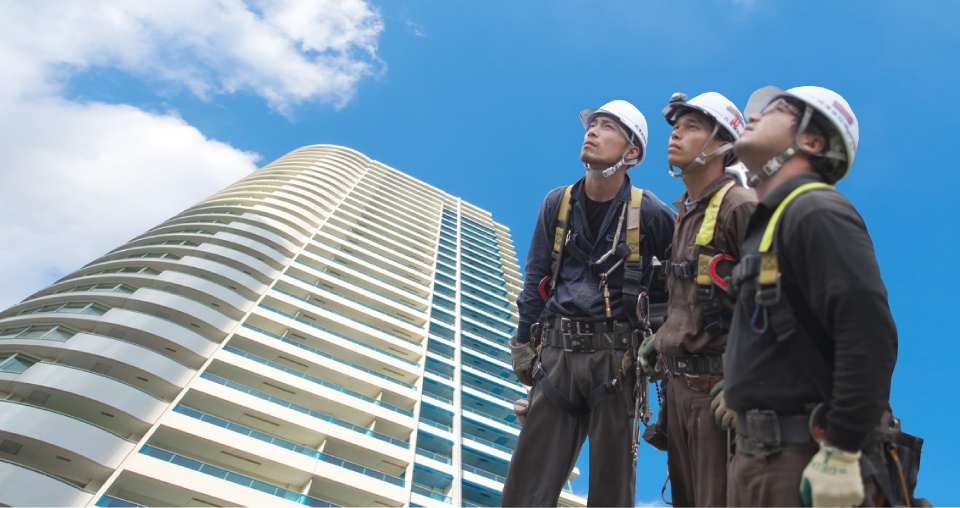 “足場専門工事業”の特殊性を追求し、「安心・安全第一」「効率的に現場を動かすネットワーク」「仕事の質とマナーの質」を強みに、大規模な都市再開発など大小多様な工事現場を支えるプロフェッショナル集団です。